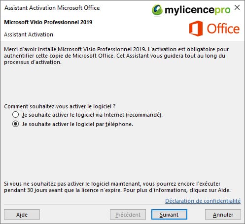 Nota : Uma vez instalado o Microsoft Visio 2019, será necessário ativá-lo.