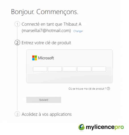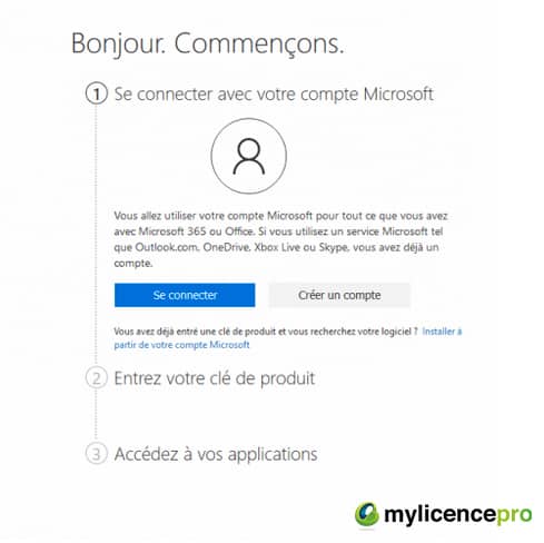 Para iniciar o Download terá de iniciar sence com a sua conta Microsoft e, em seguida, introduzir a chave de licença fornecida pelo MyLicencePro.